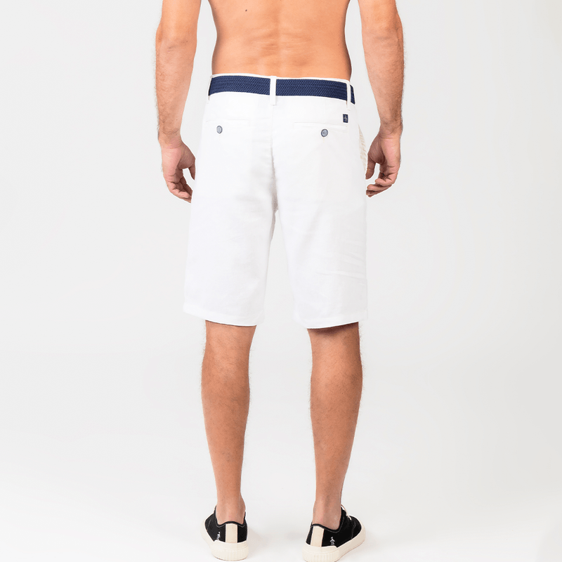 Bermuda confeccionada em linho e viscose com modelagem chino e caimento slim. Possui dois bolsos frontais estilo faca e bolsos traseiros embutidos. O cós de alfaiataria traz caimento anatômico e confortável ao corpo. Peça levemente texturizada.. A cor do produto pode sofrer uma leve alteração de acordo com o seu monitor.