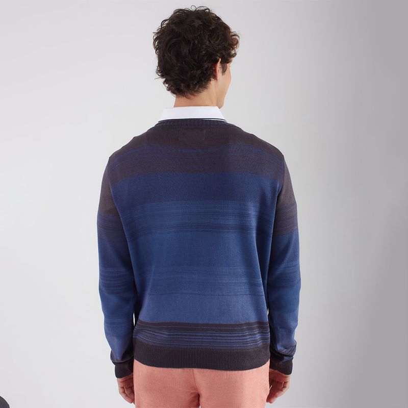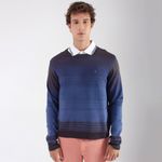Blusa de tricot fechada com manga longa e estampa listrada.