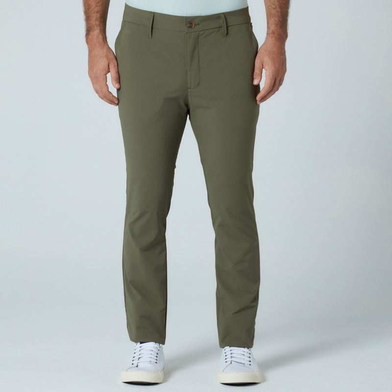 Calça com modelagem chino slim, sendo mais confortável na cintura e ajustada na barra, bolsos frontais em desenho "faca", bolsos traseiros embutidos. Cós confortável e com botão mesclado. Parte de tras com etiqueta personalizada com o logo da marca. A cor do produto pode sofrer uma leve alteração de acordo com a cor do seu monitor. Composição: 73% poliéster, 24% viscose e 3% elastano.