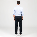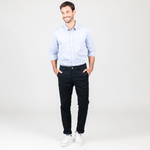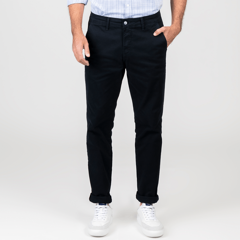 Calça em tecido de algodão e elastano, com modelagem chino slim sendo mais confortável na cintura e ajustada na barra, bolsos frontais em desenho "faca", bolsos traseiros embutidos finalizados com botões texturizados, cós com desenho confortável e abotoamento também com botão texturizado e assinatura Penguin no bolso traseiro em etiqueta personalizada com o logo da marca. A cor do produto pode sofrer uma leve alteração de acordo com a cor do seu monitor.