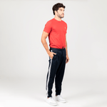 Calça masculina tipo jogger inspirada nas calças esportivas dos anos 80. Possui dois bolsos tipo faca e punhos canelados. Caimento slim. A cor do produto pode sofrer uma leve alteração de acordo com o seu monitor.