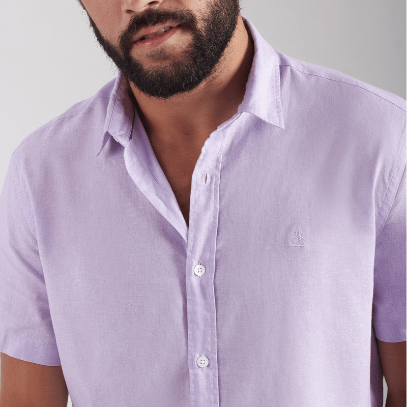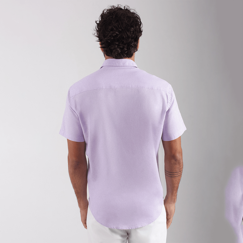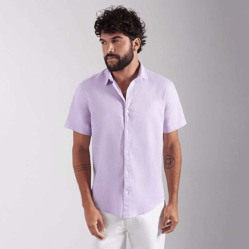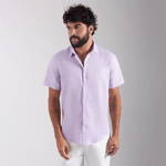 Camisa masculina de manga curta Cambraia em Linho. Composição 55% Linho e 45% Algodão.