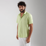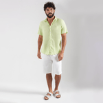 Camisa masculina de manga curta Cambraia em linho. Composição: 55% linho e 45% algodão.