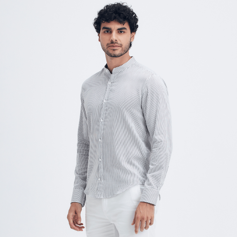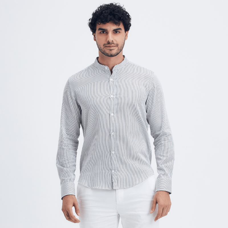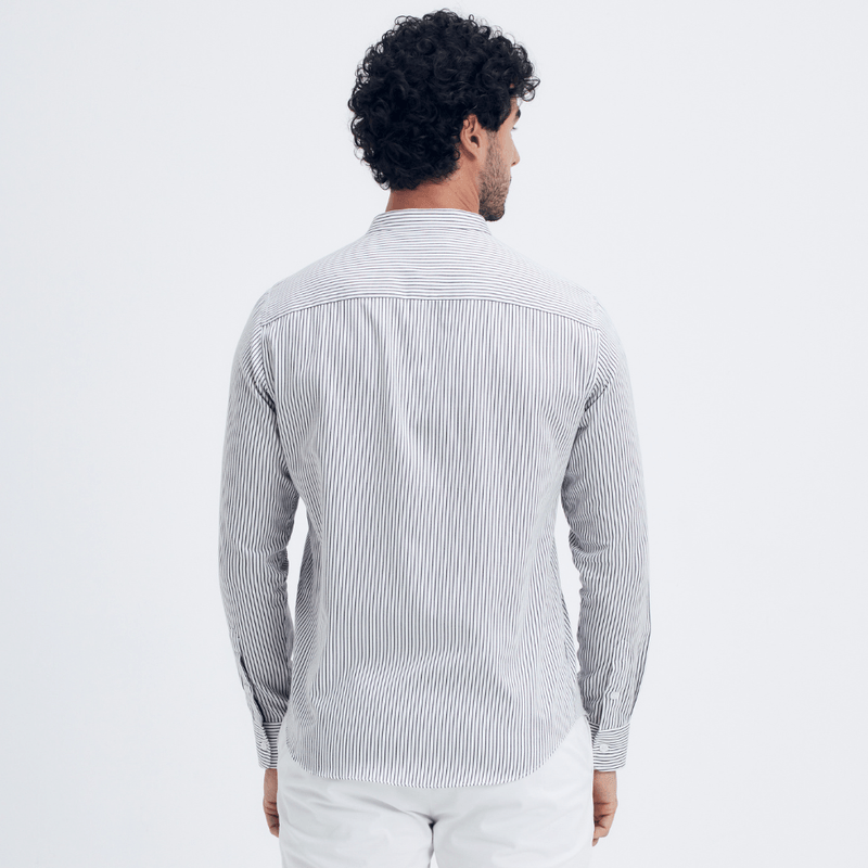Camisa manga longa em modelagem regular e gola mao, 100% algodão, ideal para quem busca um visual contemporâneo sem abrir mão do conforto. Ela traz um estilo náutico sofisticado, perfeito para compor looks casuais ou semi-formais, que exigem um toque de classe. Este produto possui o selo de qualidade "oeko-tex standard 100" que confere ao tecido um padrão de produção livre de substâncias nocivas.