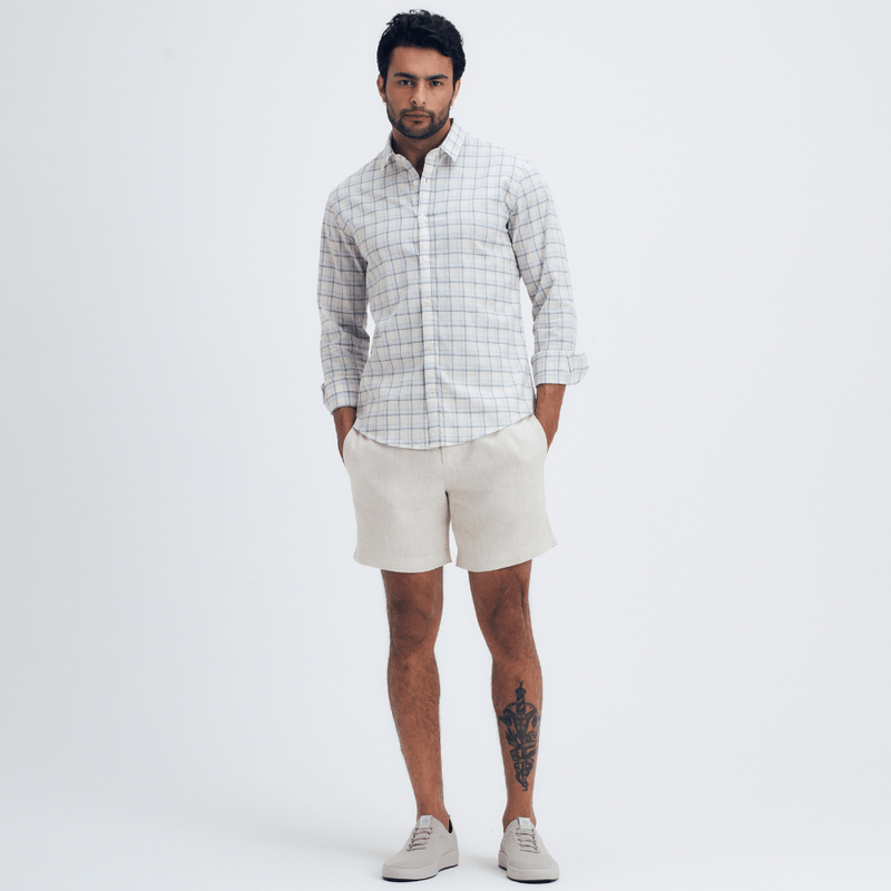 Confeccionada com uma mistura de 85% algodão e 15% linho, o equilíbrio perfeito entre o conforto do algodão e a frescor e leveza do linho, tornando-se ideal para diversas ocasiões e estações do ano. O acabamento do tecido confere uma sensação agradável ao toque, ao mesmo tempo que agrega durabilidade a peça. A estampa xadrez traz um toque de estilo clássico e versátil, facilmente combinando com looks mais casuais ou até mesmo semi-formais.