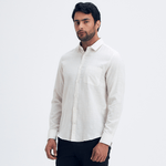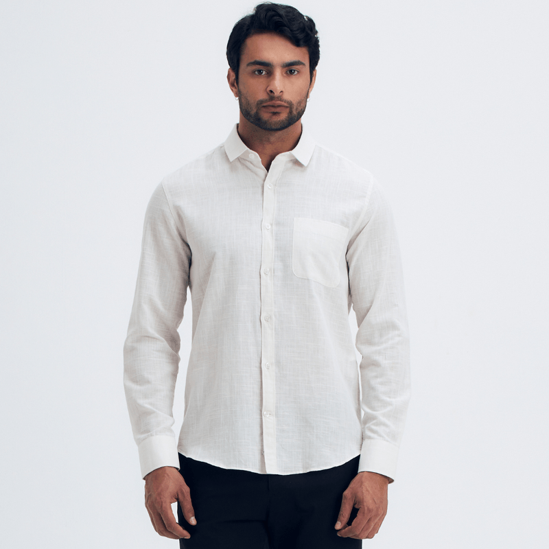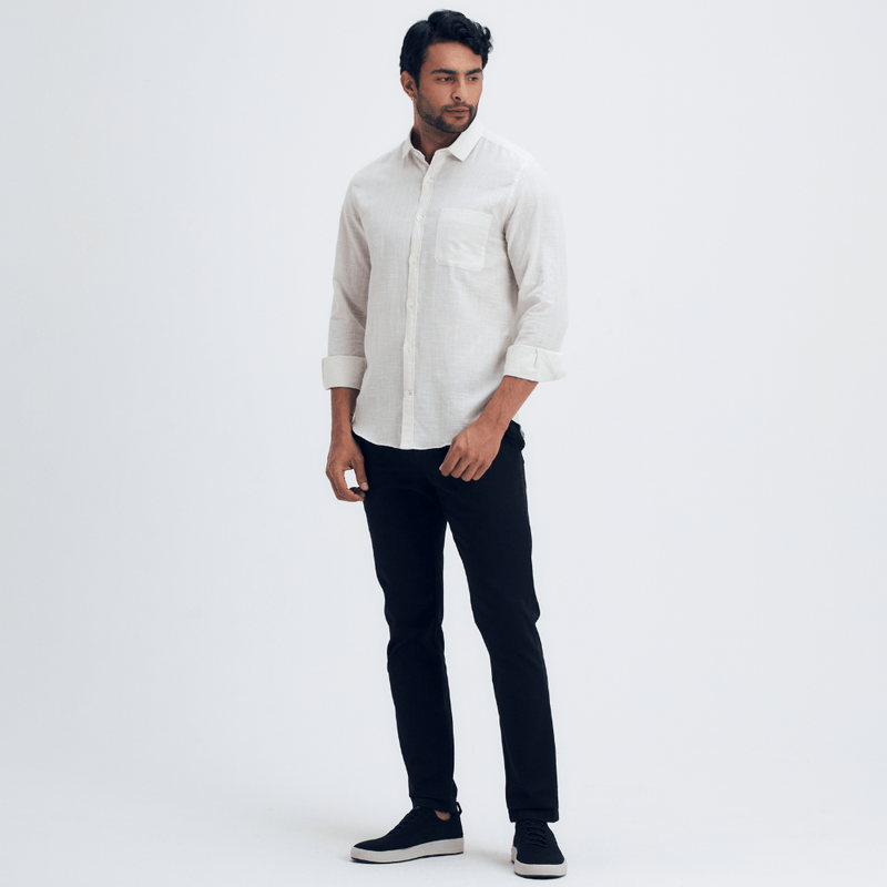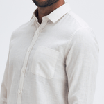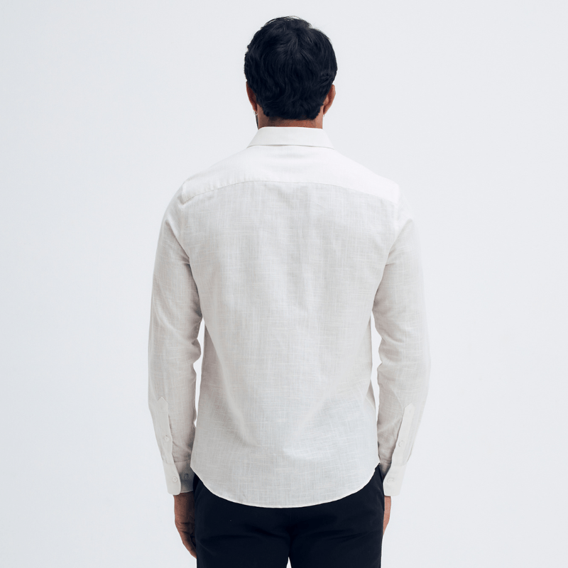 Camisa manga longa em modelagem regular, confeccionada com uma mistura de algodão e linho, ela oferece um toque macio e suave, enquanto proporciona respirabilidade e leveza, sendo perfeita para climas mais quentes ou para o dia a dia. O tecido de algodão garante suavidade e conforto, enquanto o linho traz um toque natural e moderno à peça, além de ser altamente absorvente e fresco.