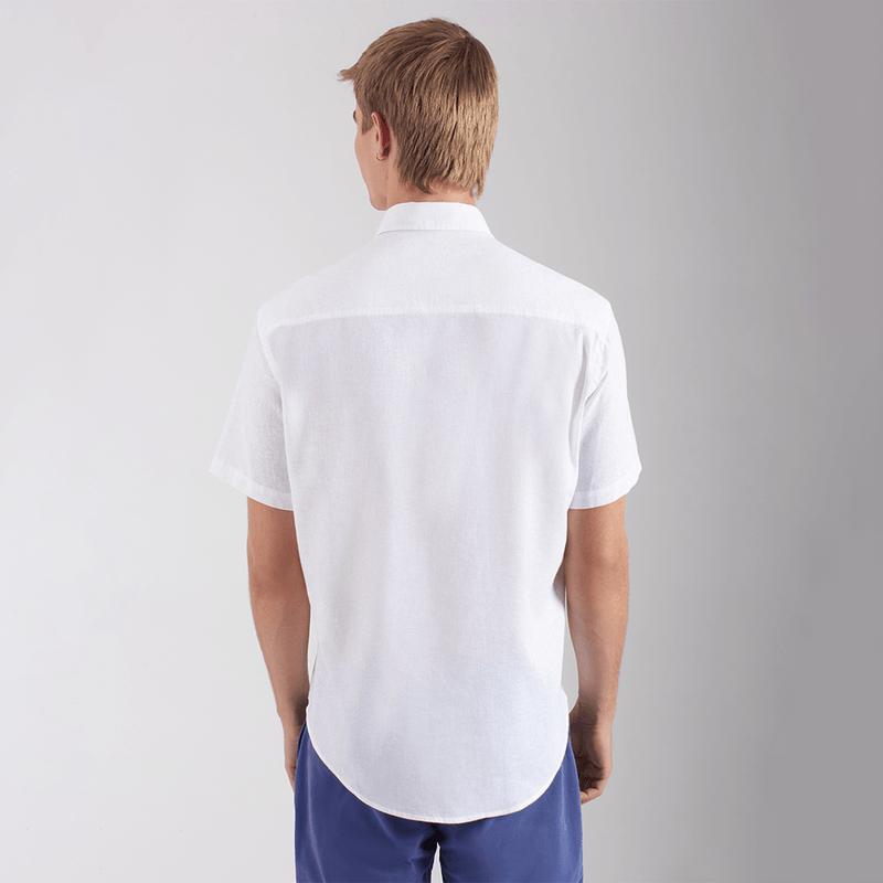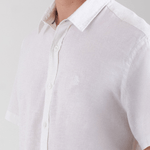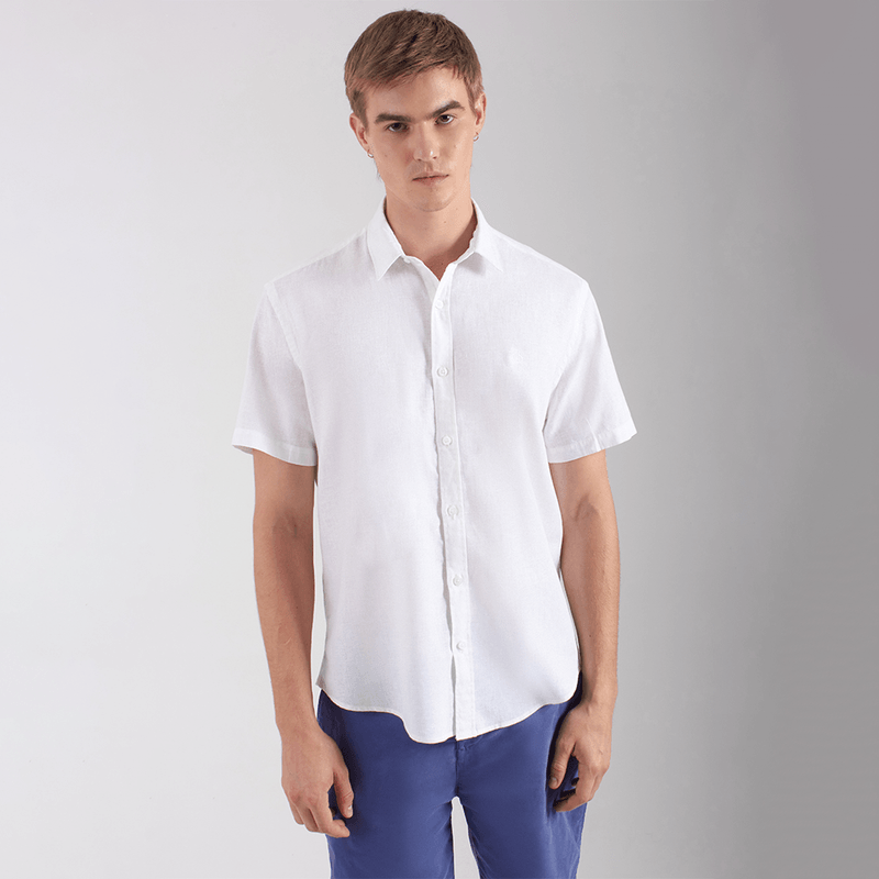 Camisa masculina de manga curta Cambraia em linho. Composição: 55% linho e 45% algodão.