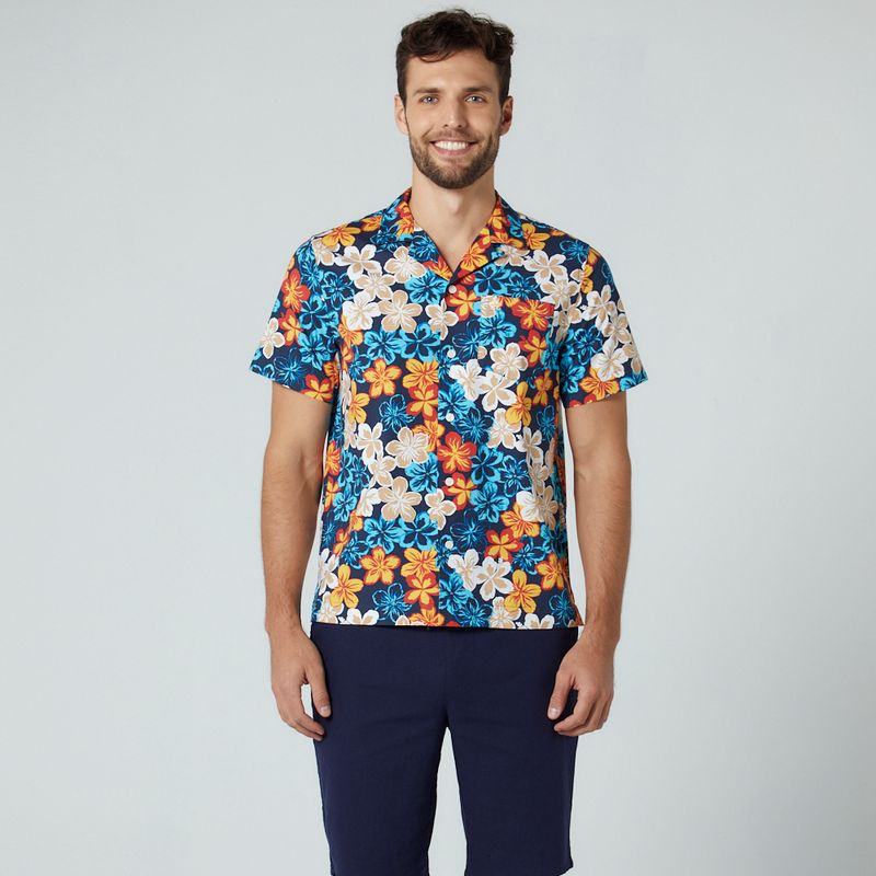 Camisa de manga curta confeccionada em algodão e viscose ecovero com estampa exclusiva full print. O logotipo da marca adorna no bolso frontal da camisa. Modelagem regular. Uma pegada mais esportiva para quem procura uma camisa mais leve e arrojada. A cor do produto pode sofrer uma leve alteração de cor de acordo com o seu monitor.