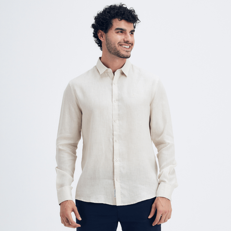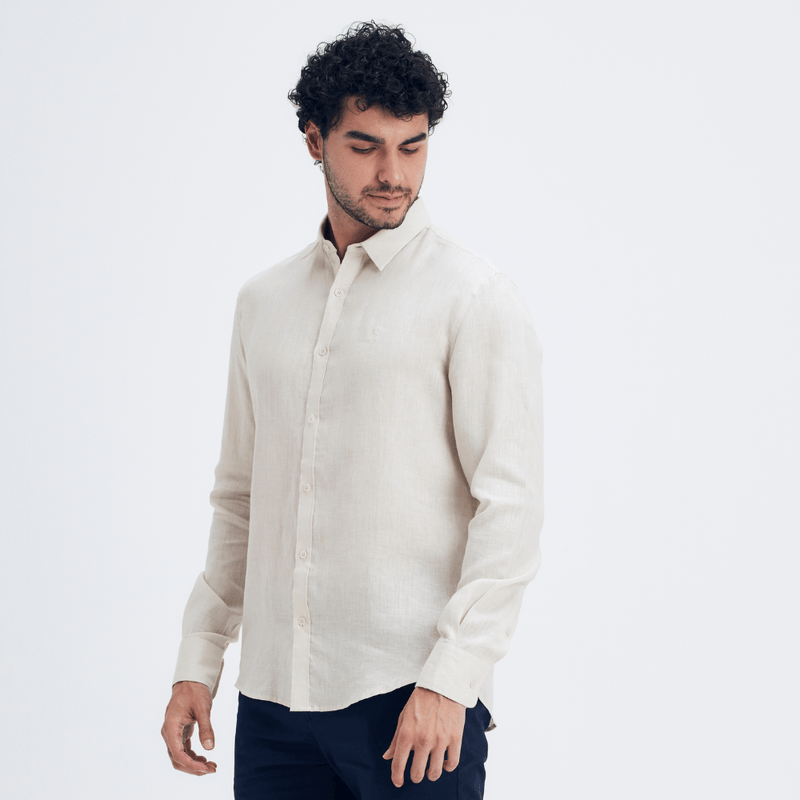 Camisa Modelagem "Regular" em Tecido 100% Linho, com Botões Personalizados e Assinatura Logo "Pete" em Bordado no Tom da Peça. 100% Linho Composição 100% Linho.