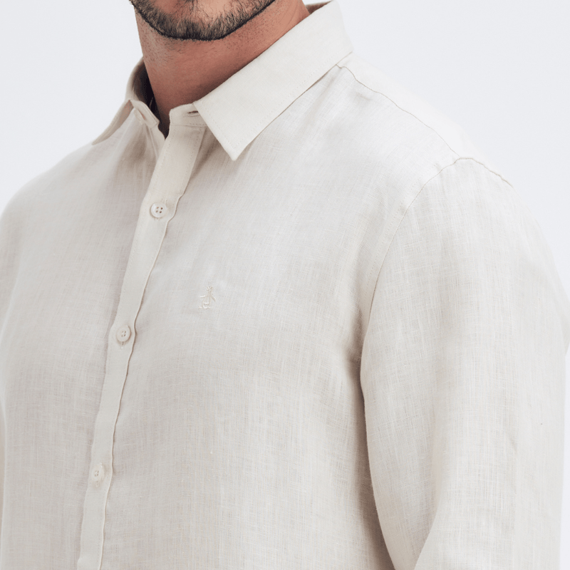 Camisa Linho Lisa Areia Original Penguin