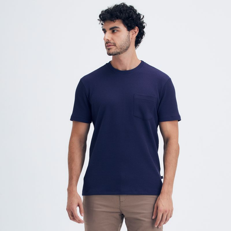 Camiseta com Bolso Texturizada Marinho Original Penguin