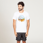 Camiseta de manga curta confeccionada em malha de algodão. Possui estampa frontal com gráfico sazonal. Caimento regular. A cor do produto pode sofrer uma leve alteração de acordo com a cor do seu monitor.
