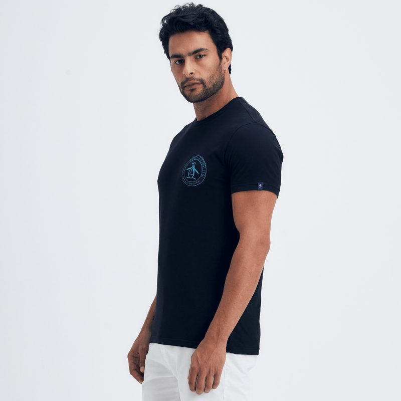 Camiseta de manga curta confeccionada em malha de algodão. Possui estampa localizada na parte superior do peito esquerdo com o logotipo icônico da marca. Caimento regular. Composição: 100% Algodão.
