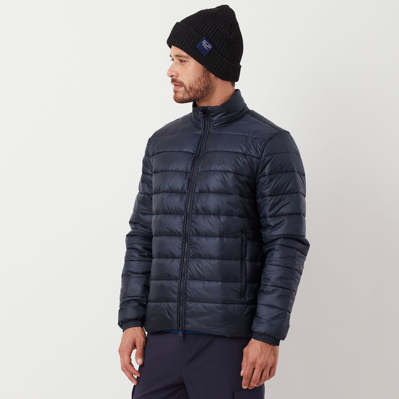 Jaqueta puffer em tecido nylon de poliéster reciclado, gola alta, bolsos frontais e vista com fechamento em zíper e assinatura frontal com logo “Pete”, nosso mascote, em patch emborrachado.