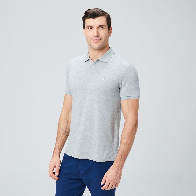 Polo modelagem "regular", em malha leve de piquet de algodão, tencel tm lyocell e elastano, assinatura logo "pete" em pacth termocolante