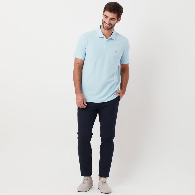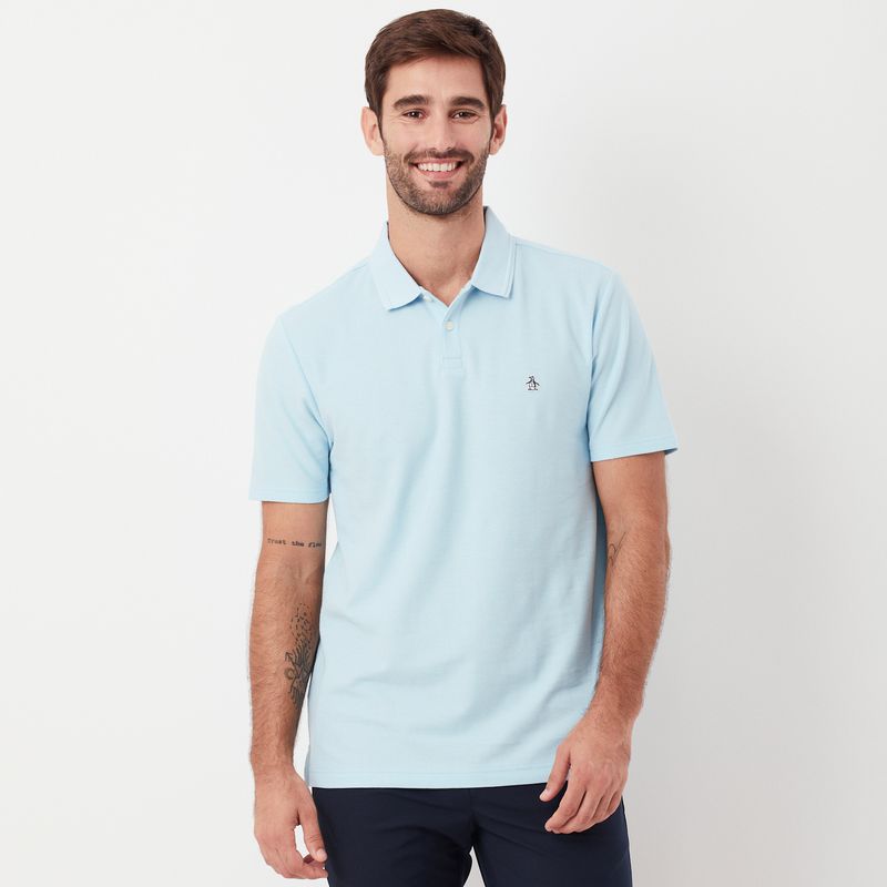 Polo masculina Original Penguin de modelagem “regular” em malha Piquet leve de algodão orgânico e assinatura logo “Pete” em patch termocolante. Composição: 100% algodão.