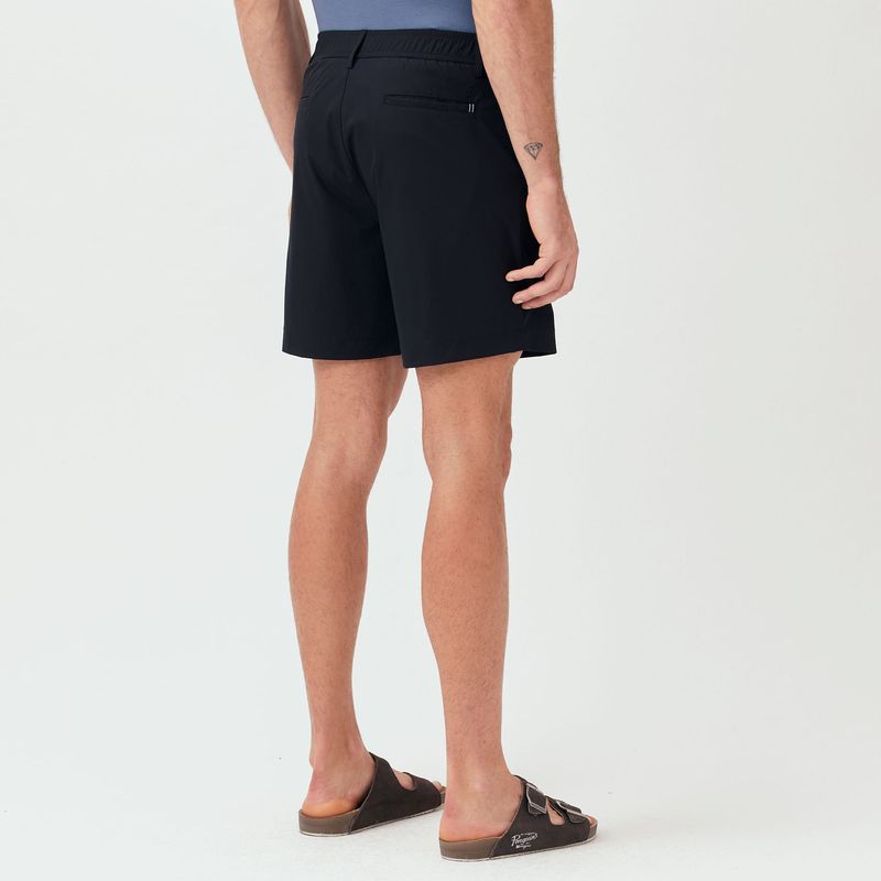 Shorts chino casual em tecido 88% poliamida e 12% elastano, o que permite um excelente caimento e uma melhor adaptabilidade ao corpo. O tecido tecnológico que não amassa e seca com facilidade, ideal para atividades do dia-a-dia que exigem conforto sem abrir mão da sofisticação. Possui certificado oeko-tex®, isto significa que o consumidor tem a garantia de que a matéria-prima deste produto não contêm quaisquer substâncias nocivas para a sua saúde e para o ambiente. Com bolsos faca laterais e mais um bolso extra embutido com zíper, oferecendo praticidade e funcionalidade. O detalhe de cadarço listrado no bolso traseiro adiciona um charme especial, enquanto o botão personalizado eleva ainda mais o design. Para completar, a assinatura "Pete" em bordado na mesma tonalidade da peça garante um toque de exclusividade.